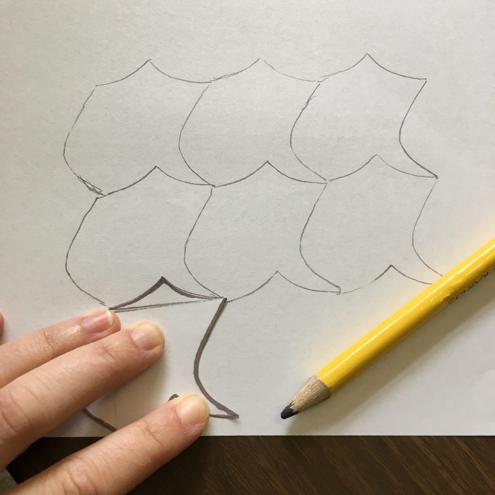 - Step 6: You now have the shape you are going to tile, or tessellate. Flip it over and tape it so the pieces stay in place. Now take a blank sheet of paper and trace the shape in the middle of it.