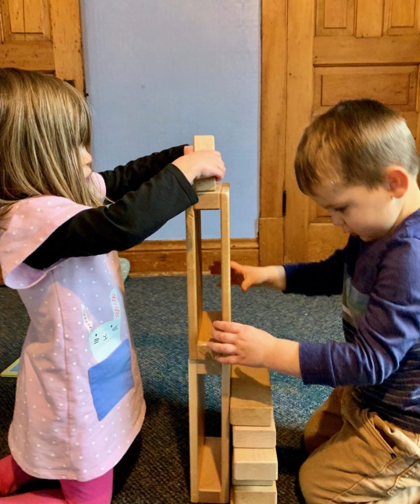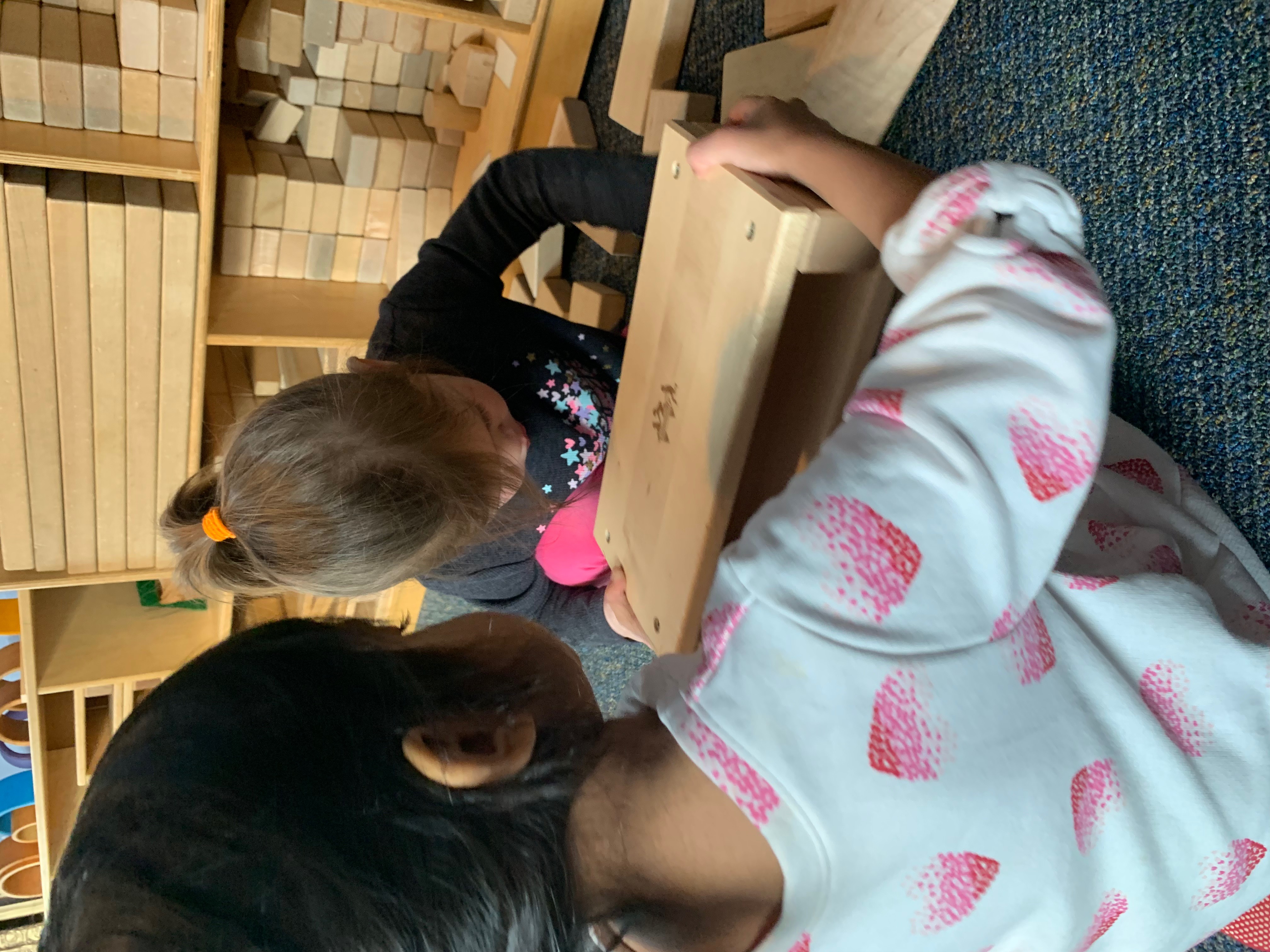 “We need a strong base. I think we can make it taller now.” she says as the two young friends silently begin another attempt at a tall tower.